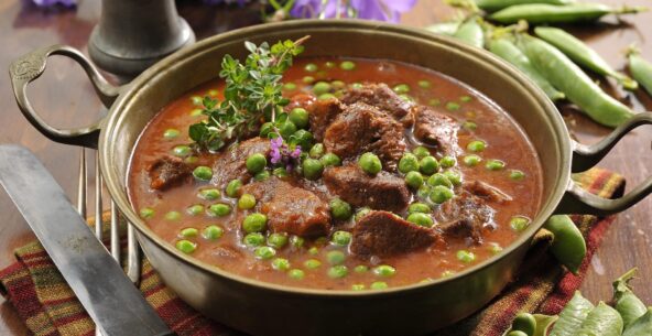Odblaněnou jelení plec nakrájíme na kostky, opepříme, osolíme a obalíme v hladké mouce promíchané se lžičkou sušeného tymiánu.