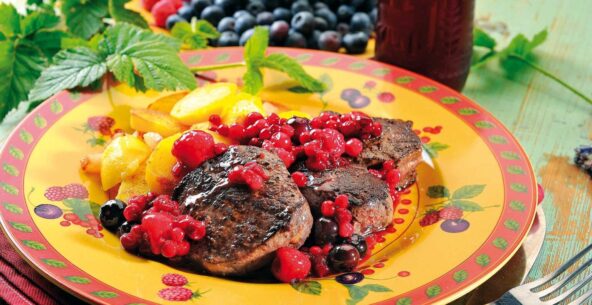 Odblaněný daňčí hřbet nakrájíme na 2–3 cm silné plátky, lehce je naklepeme, opepříme, osolíme, potřeme olejem a necháme aspoň hodinu odležet.