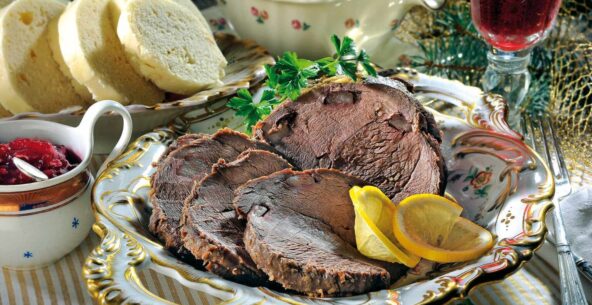 Na másle do růžova usmažíme na plátky nakrájenou kořenovou zeleninu s cibulkou. Přidáme 1 dkg celé skořice, 5 hřebíčků, 5 zrnek pepře, 5 zrnek nového koření, tymián, bobkový list, kousek citronové kůry a lžíci cukru.