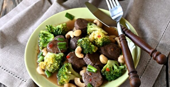 Jelení panenská svíčková s brokolicí a kešu ořechy