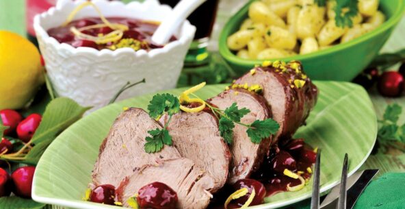 Pečeně z divočáka s višňovou omáčkou